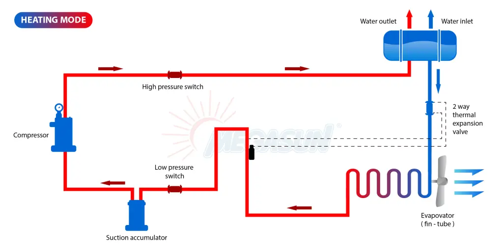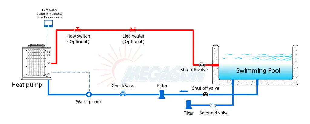 SƠ ĐỒ NGUYÊN LÝ BƠM NHIỆT HEAT PUMP BỂ BƠI MEGASUN
